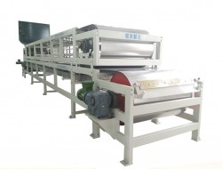 固化后的产品被下料刮刀从钢带上刮下,然后经过破碎机粉碎,经收集后直接进入包装程序。