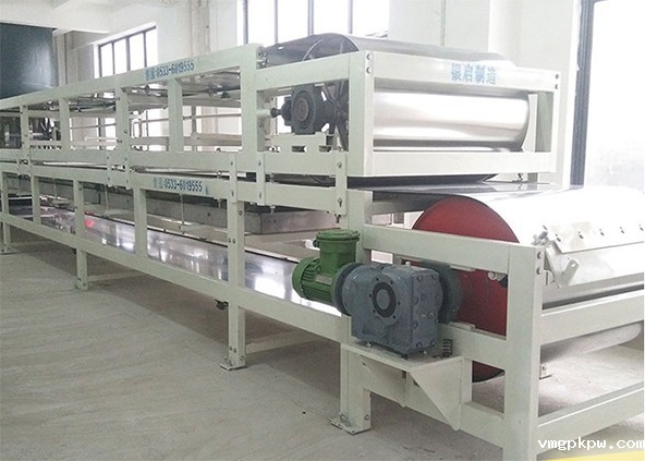 液态的物料流经拌热管道进入设备前端的布料装置(溢流槽),并不断的从溢流槽中溢出,不间断的均匀分布在运动的两层钢带之间。物料在上下两层钢带间受到冷却水的均匀冷却,用钢带自身优良的热传递特性,使液态物料在移动过程中固化成固体物料片。