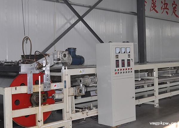 为了保持挤出的塑料不会出现因温度降低,流动性不足,妨碍挤出。特定地在机头外增加了一定功率的加热圈,保证了出料的正常饱满。并且在机头上设置的出料孔为平行15孔型,加大了出料量增加了生产速度。机头结构式平行挤出机头,螺纹同料筒相连接,当更换网板时可以省时省力。